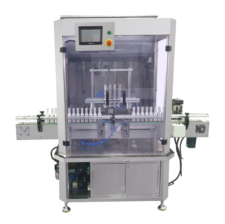 5、具有無瓶不灌裝、自動進瓶出瓶、自動定位灌裝、自動控制液位等功能,自動化程度高;灌裝嘴設計科學合理,配防滴漏裝置,確保灌裝不滴漏,保證物料瓶及設備的干凈衛生。