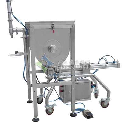 半自動瓶裝醬料灌裝機是采用光電自控系統,活塞式灌裝形式,既可連續灌裝,也可自由灌裝。臥式攪拌結構,解決了油料分離較快,立式攪拌不能解決的的顆粒醬類物料的灌裝,保證了醬和油的充分混合,大大提高灌裝性能和計量的精度;我司所研制的這款瓶裝醬料灌裝機-蒜蓉醬灌裝機,專業針對大顆粒,配帶臥式攪拌功能,解決了辣椒醬等顆粒物料的分層現象,并且使灌裝更加精確。